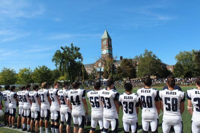 Synopsis: A big first half from Trinity, including a ‘pick six’ and a kick-return touchdown, meant that the strong second half from the Blues wasn’t enough to take the victory. Jack Prince (FY) threw for three touchdowns. Notable performances from running back Michael Kagan (FY), Ryan Grant (Y2) and Joe Hill (FY).