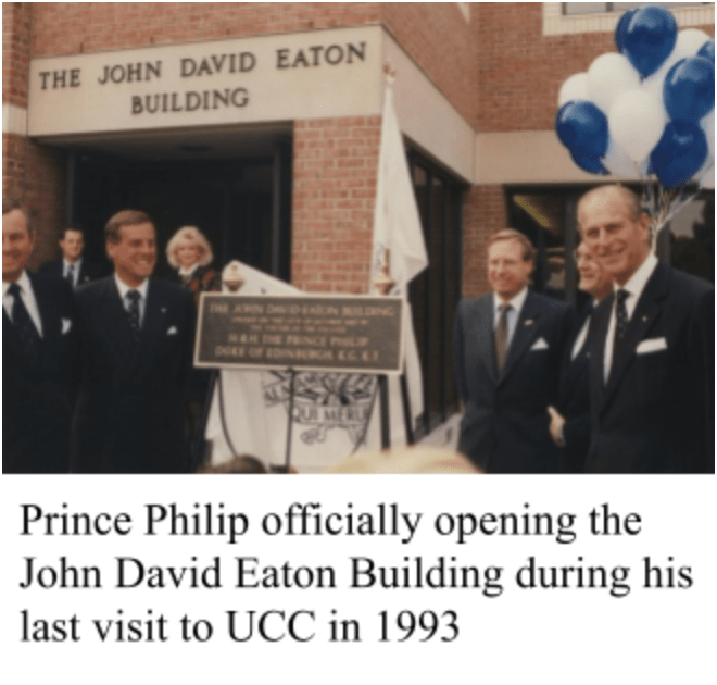 Prince Philip’s fifth, and final, visit to UCC occurred in the autumn of 1993. Much like his first more than 30 years prior, this last “inspection” of the College was greeted with much fanfare, as noted by then-UCC Principal J. Douglas Blakey, who remarked in Old Times that Prince Philip’s “popularity and appeal remain as high as ever as we saw by the large numbers of the College family who turned out to greet him,” making the visit “one of the memorable events of the fall term.”