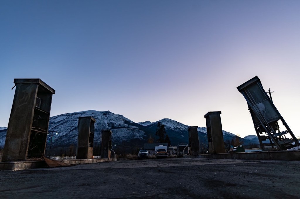 As dusk descended upon Jasper, charred gas stations stood face to face, twisted and silent like fallen sentinels frozen in a final salute. Against the cold embrace of the Rocky Mountains, they formed a haunting aisle of ruin.